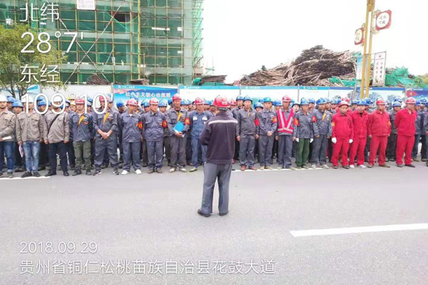施工人員開(kāi)班前站班會(huì)